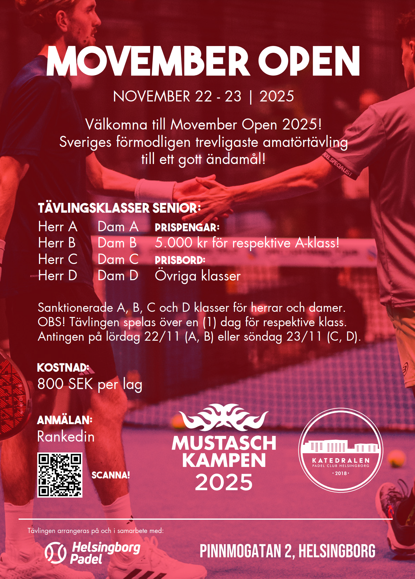 Anmälan: Movember Open 2025 (A, B, C, D) Padel Tournament Helsingborg - Rankedin | Rankedin